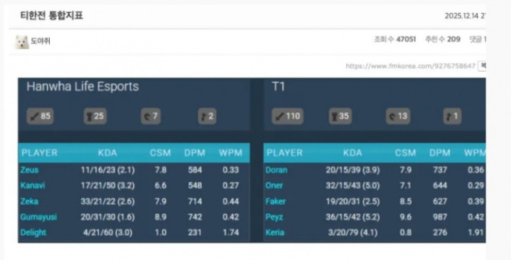 T1-HLE的赛后数据,超级有趣。
