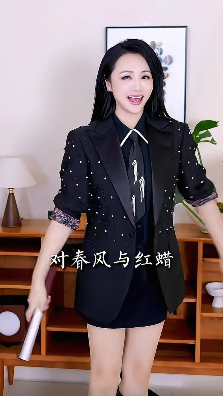 线上配资开户网51岁曹颖最新穿搭: 西装外套+超短裙, 减龄又时髦, 美得像35岁