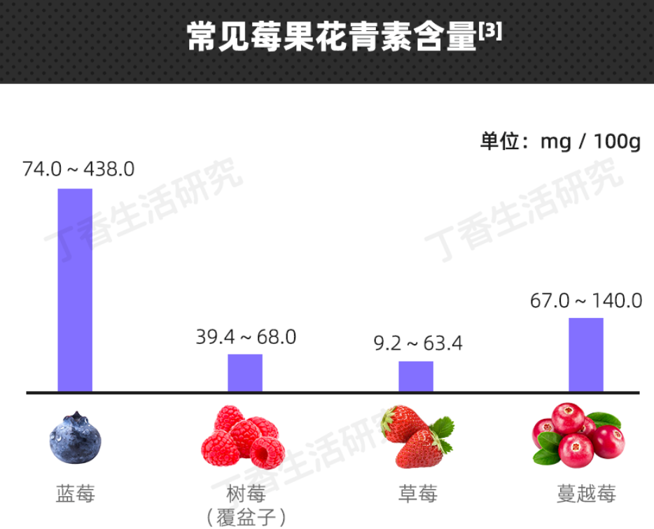 常见莓果花青素含量,来源:丁香生活研究。